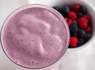 Ingredients: 3 scoops Lean1 Vegan Vanilla, 1/2 cup raspberries, 1/2 cup blueberries, 1/2 cup strawberries, 1/2 cup blackberries, 1 banana (sliced), 1 cup almond milk, 5-8 ice cubes