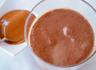 Ingredients: 1 scoop Lean1 Neuro Chocolate, 1/2 scoop Lean1 Vegan Banana, 1 persimmon, 1 tsp honey, 1 cup almond milk, 1/2 tsp cinnamon