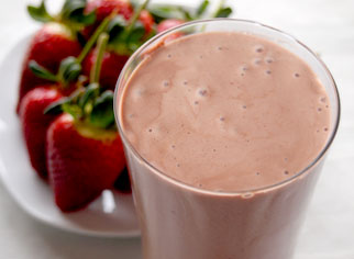Ingredients: 2 Scoops (60 Grams) Lean1 Chocolate, ½ Cup Fresh or Frozen Strawberries, 8 Ice Cubes, 8 Oz Cold Water